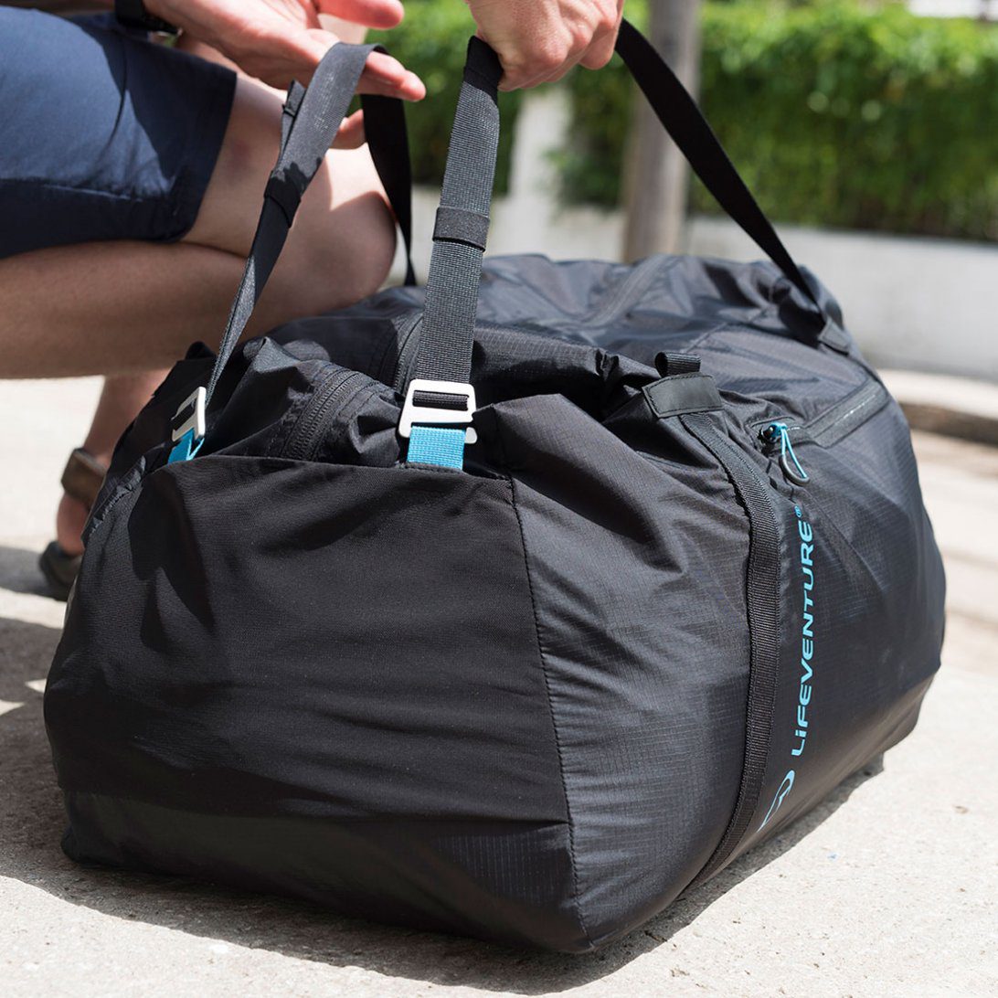 Lifeventure Packable Duffle 70 L — легкая, но объемная сумка для путешествий и командировок, в которую можно компактно уместить все нужные вещи. Сделана из прочной водонепроницаемой ткани и может быть легко преобразована в рюкзак.
