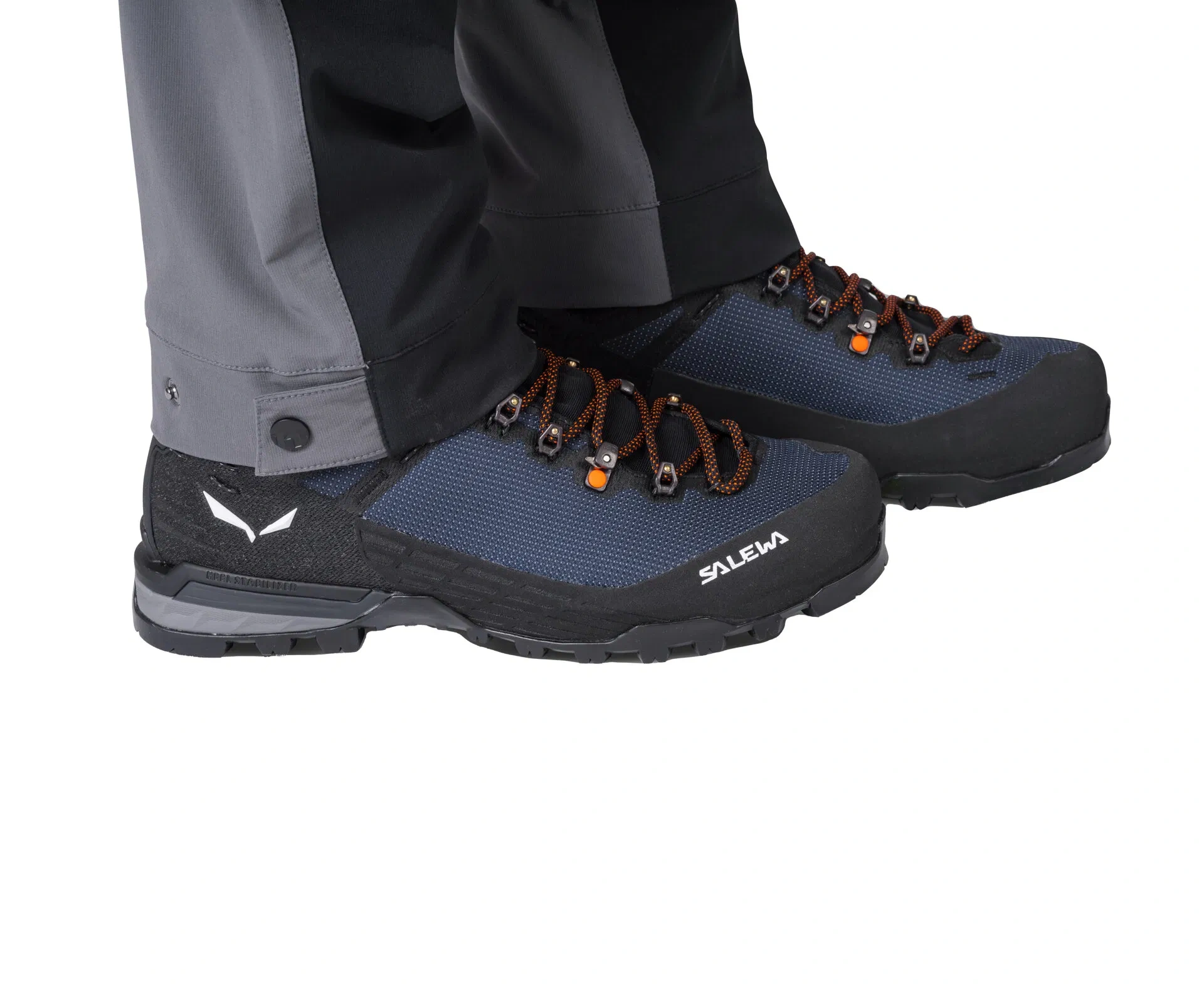 Croiala pantalonilor este completată de genunchi preformați și o talie reglabilă cu curea inclusă. Aceștia dispun de o configurație generoasă a buzunarelor: două buzunare frontale, două buzunare pe coapsă cu fermoar și trei buzunare la spate (unul cu fermoar și două buzunare adânci, poziționate mai jos, care definesc designul pantalonilor). Partea inferioară a cracilor este reglabilă pentru a se adapta diferitelor tipuri de încălțăminte. Pantalonii sunt ideali pentru drumeții de mai multe zile și activități montane solicitante.