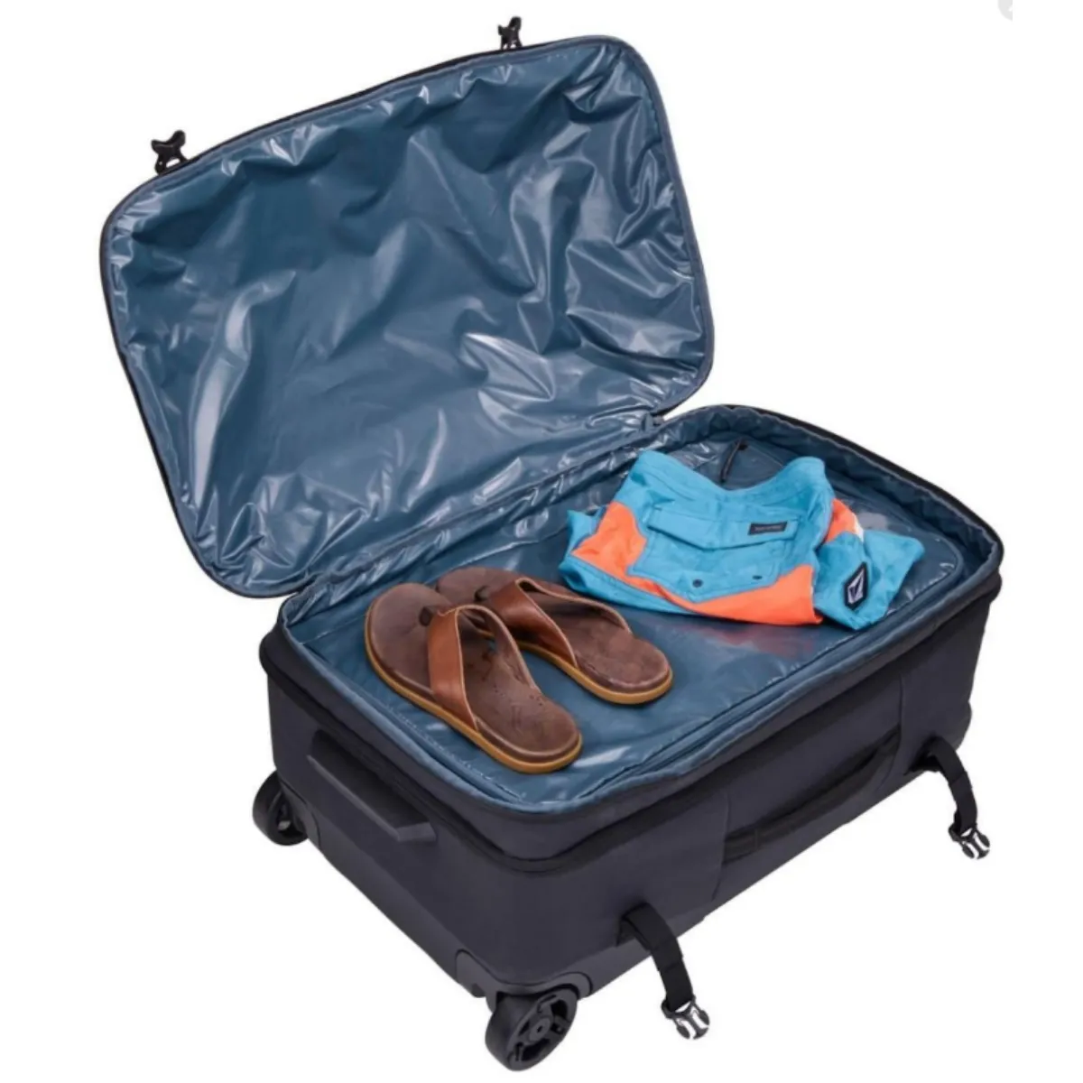 Thule Aion wheeled duffel 70 cm/28″ black — este o geantă robustă pe roți, concepută pentru călătorii lungi și expediții. Caracteristica principală a acestui model este geanta organizatoare detașabilă din TPU (poliuretan termoplastic), care se fixează în interior și permite separarea hainelor murdare, umede sau a echipamentului sportiv de restul conținutului curat, prevenind transferul mirosurilor și al umidității.