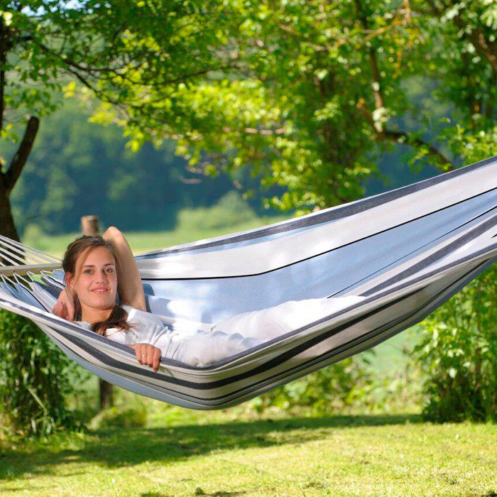 Hamac Amazonas Samba — foarte moale, plăcut pentru corp, din bumbac cu impregnare hidrofugă, de asemenea rezistentă la UV. Cusut în stilul celor mai bune hamace braziliene. Lamele încrucișate maximizează distribuția sarcinii. Fiecare hamac este țesut manual și întruchipează tradițiile de top ale maeștrilor brazilieni. Densitatea țesăturii, care permite hamacului să reziste la greutăți mari, lungimea și lățimea hamacului asigură un confort extraordinar.