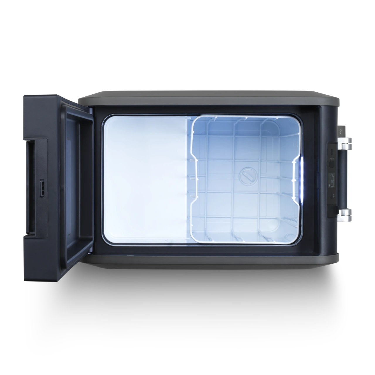 Dometic CoolFreeze CFX5 25 — este un frigider compact și mobil cu compresor, care poate găzdui până la 40 de doze de 330 ml și 5 sticle de 1,5 l, fiind ușor de plasat pe bancheta din spate a mașinii sau într-un cărucior de transport. Este varianta ideală pentru excursii de o zi sau călătorii singur ori în cuplu. Panourile vacuumate cu izolație termică superioară asigură o eficiență energetică excelentă, în timp ce capacul cu închidere etanșă și compresorul puternic garantează o răcire fiabilă. Gestionează frigiderul prin intermediul aplicației intuitive pentru smartphone și fii gata pentru orice aventură.