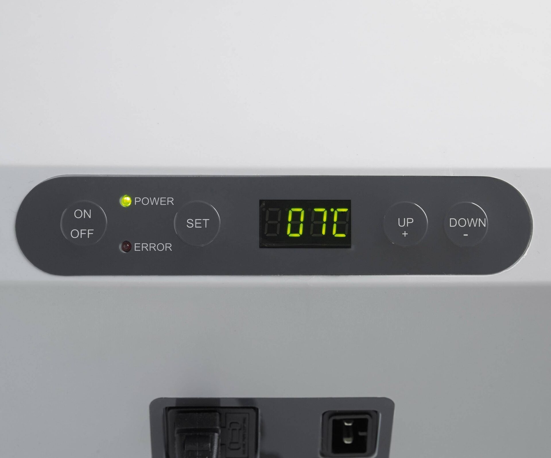 Are un afișaj digital cu indicație de temperatură, putere 12/24/220 V, mânere pentru transportare și o siguranță a bateriei (se stinge automat când tensiunea bateriei este scăzută).