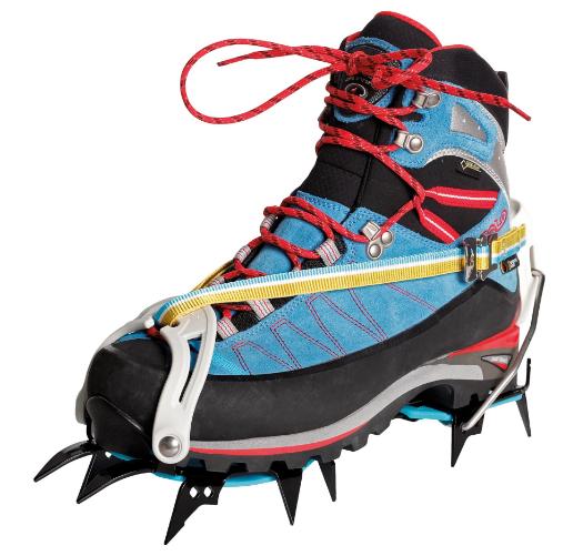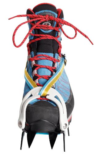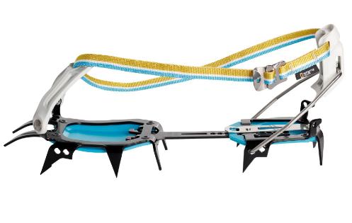 - Forma asimetrică a crampoanelor se adaptează perfect ghetei și antepiciorului pentru performanțe maxime pe pantele abrupte