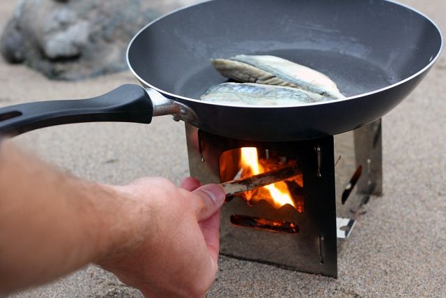 - Această sobă compactă din titan este alimentată cu crengi, așchii mici de lemn, scoarță și iarbă uscată. Cu cât combustibilul este mai uscat, cu atât mai mare va fi performanța sa. Pe vreme deosebit de umedă sau în absența lemnului uscat, puteți recomanda încălzirea sobei cu scoarță de mesteacăn.