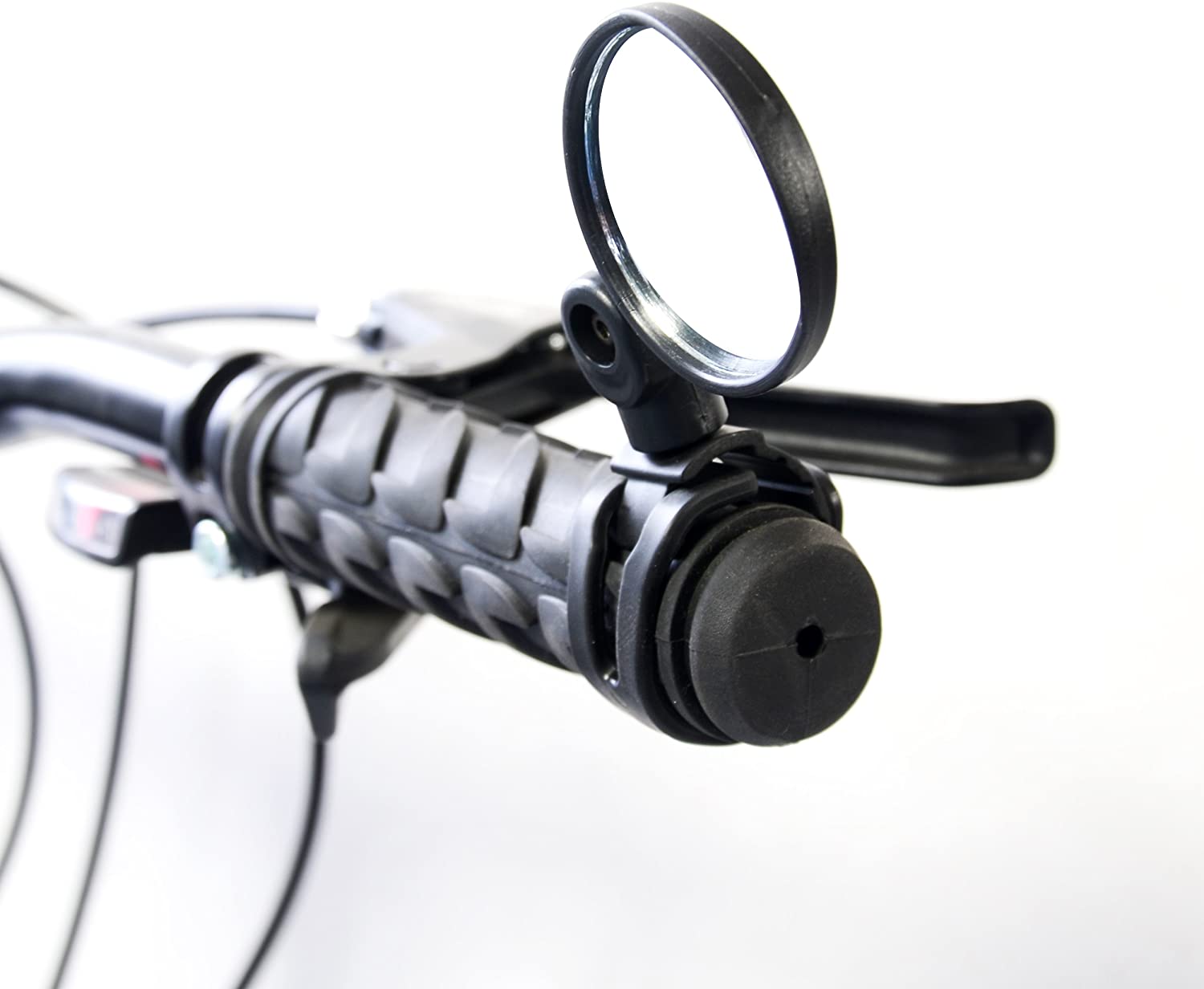 Oglindă de bicicletă M-WAVE Mini Short 270034 vedere din spate, montare pe volan.